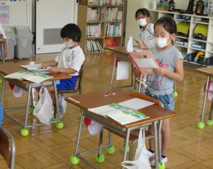 9月14日(水) 1年生の国語 公開日 2022/09/15 更新日 2022/09/15 できごと 5校時、1年生の国語では、「やくそく」を読んで、登場人物の気持ちになって考えていました。自分の考えをノートに書き、手を挙げて発表し、みんなで共有しました。黒板には、ネームプレートが貼られ、子供たちの意見でいっぱいになりました。