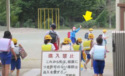 (写真上)保美の通学班の子供たちは、毎朝、校門に立つ校長に聞こえるように、手を振って「おはようございます!」と気持ちのよいあいさつをしてくれます。