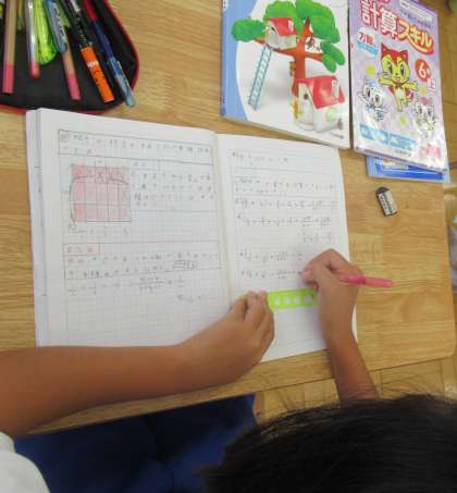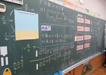 9月16日(金) 6年生の算数 公開日 2022/09/16 更新日 2022/09/16 できごと 4校時、6年生の算数では、めあて「分数のかけ算でも計算のきまりが成り立つか調べよう」の学習に取り組んでいました。「これまで」学習した計算のきまりをふり返りながら確認していました。 運動会練習に励んでいる子供たちですが、教室でも教科等の学習に集中して取り組んでいます。「文武両道」で頑張っています。