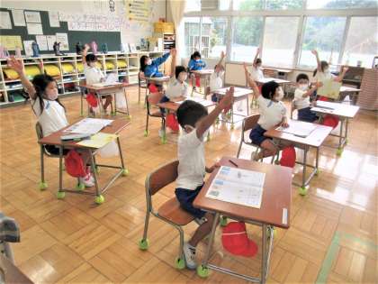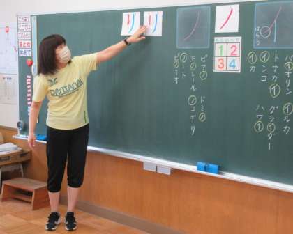 9月21日(水) 1年生の国語 公開日 2022/09/21 更新日 2022/09/21 できごと 5校時、1年生の国語では、カタカナの学習をしていました。書き方と一緒に、新しく勉強したカタカナが使われている言葉を考えて発表していました。みんな積極的に手を挙げて発言しています。「これまで」に学習したひらがな「り」と似ているカタカナ「リ」とのちがいについても、みんなで確かめ合っていました。子供たちの「気付き」はたいしたものです。