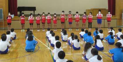 今日の業前活動の時間に、明日行われる「藤岡市・多野郡小学校陸上教室記録会」に学校代表として出場する選手の壮行会を行いました。