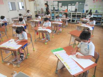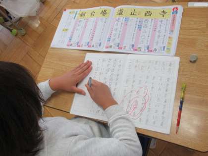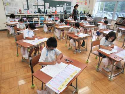 4校時、2年生の国語では、新出漢字の学習をしていました。子供たちは、ていねいにノートに練習していました。