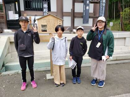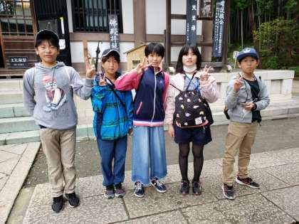 修学旅行〜円覚寺〜 公開日 2022/10/19 更新日 2022/10/19 できごと 円覚寺で2つのグループに出会いました。時間を見たり、地図で次の行き先を確認したりして、班ごとに協力して行動しています。