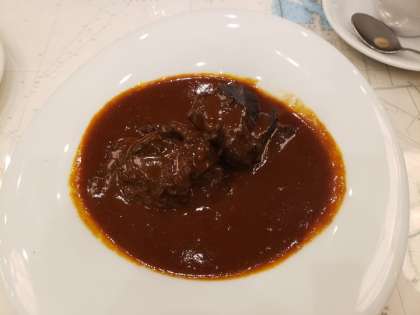 修学旅行〜ディナータイム〜 公開日 2022/10/19 更新日 2022/10/19 できごと ホテルの夕食は、前菜からメインディッシュ、デザートまでのフルコースです。テーブルマナーも学びました。 ビーフシチューは、ナイフがいらない位柔らかくて、ホロホロでした。