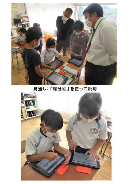 本時の授業は、藤岡市教育研究所の検証授業「自分の考えを明確にし、表現する力を育成する算数科指導の工夫〜ICT端末を活用した数学的活動を通して〜」として行いました。藤岡市教育研究所長や担当指導主事が来校し、授業を参観しました。