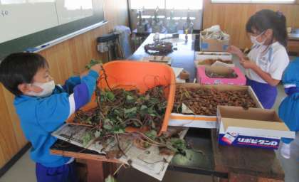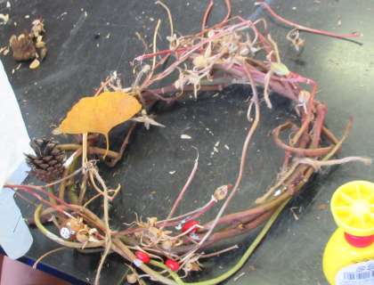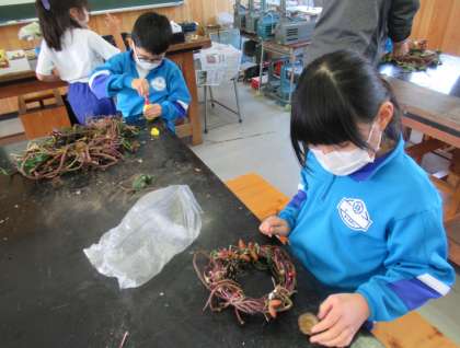10月21日(金) 1年生「フォレストリースクール」(2) 公開日 2022/10/21 更新日 2022/10/21 できごと アサガオのつるで土台となる輪っかを作ったら、そこにボンドで飾り付けをしていきます。ドングリやイチョウの葉、松ぼっくりや赤い実など、子供たちはすてきに飾り付けていました。よく見ると、トトロもいます! 今日作ったリースは、それぞれの家ですてきに飾られることでしょう。