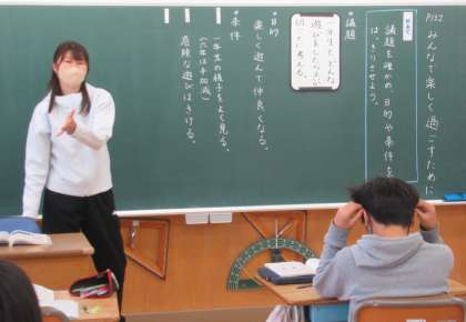10月24日(月) 6年生の国語 公開日 2022/10/24 更新日 2022/10/24 できごと 1校時、6年生の国語では、「みんなで楽しく過ごすために」の学習で、議題「1年生とどんな遊びをしたらよいか」を班ごとで話し合うために、その目的や条件について確認していました。国語の学習が、このあと、学校のリーダーとして1年生を楽しませる活動につながっていきます。