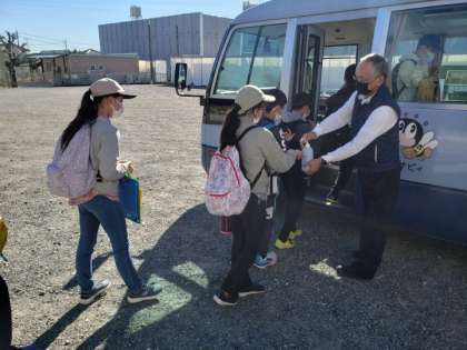 スバル自動車工場見学〜学校出発〜 公開日 2022/10/31 更新日 2022/10/31 できごと 今日は、市の教育活動用バス「マナビー」にお世話になり、出かけます。感染症対策を講じてバスに乗り込みました。「いってきます!」