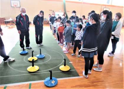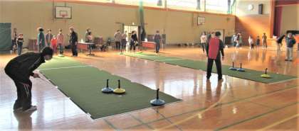11月3日(木) PTA親子レクリエーション「ユニカール」(1) 公開日 2022/11/03 更新日 2022/11/03 できごと 今日の午前中、体育館において、環境研修委員会企画による「PTA親子レクリエーション(ユニカール)」が行われました。「ユニカール」とは、体育館等の床上で行うカーリングのような競技です。藤岡市スポーツ課より講師の皆様にご指導いただき、親子で「ユニカール」に挑戦しました。