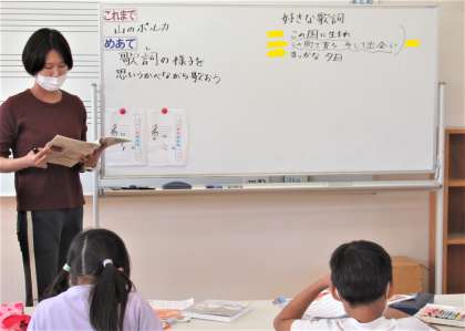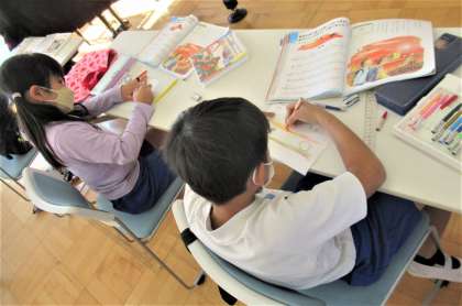11月4日(金) 3年生の音楽 公開日 2022/11/04 更新日 2022/11/04 できごと 3校時、3年生の音楽では、めあて「歌詞の様子を思いうかべながら歌おう」の学習に取り組んでいました。子供たちから、『帰り道』の歌詞で好きな歌詞が出され、その歌詞の様子を絵や色で表現していました。子供たちのワークシートには、それぞれが思い描く、『帰り道』のまっかな夕日や出会いの様子が描かれました。この子供たちの歌詞のイメージが、このあと子供たちの歌に表現されていきます。