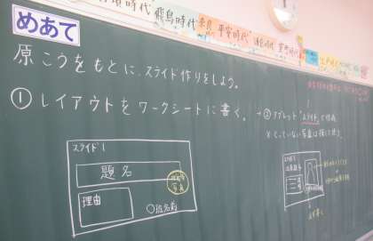 11月7日(月) 6年生の総合 公開日 2022/11/07 更新日 2022/11/07 できごと 3校時、6年生の総合的な学習の時間では、自分が調べたい課題について、これまで社会科や修学旅行で学んできたことを、タブレットPCを使って、スライドにまとめていました。このあと、それぞれが作成したスライドショーを使って、発表会が計画されることと思います。楽しみです。