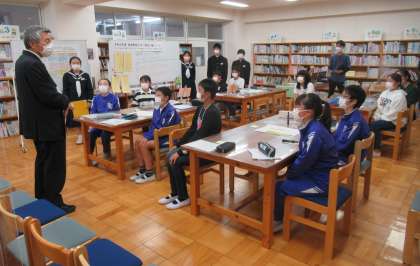 (写真中)最後に、美九里東小の校長先生から、「中学生が話合いをよくまとめてくれた。小学生にとってリーダーとしてあこがれる姿を示してくれた。そして、今日の話合いのように、自分たちの生活を自分たちで決めていくこと(自治)は、大事なこと。今日話し合われたことを各校で伝えて、東中校区4校で実践していってほしい」と話がありました。