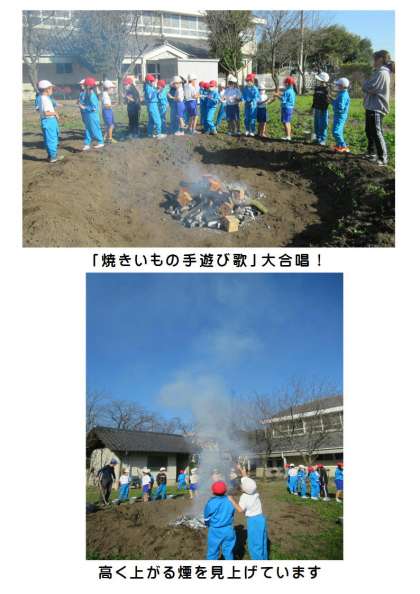 11月11日(金) 1・2年生「焼きいもパーティ」(2) 公開日 2022/11/11 更新日 2022/11/11 できごと 一つ一つ新聞紙とアルミ箔でていねいに包んだサツマイモをいよいよおき火に投入しました。焼きいもの出来上がりを楽しみに、子供たちの笑顔いっぱいです。