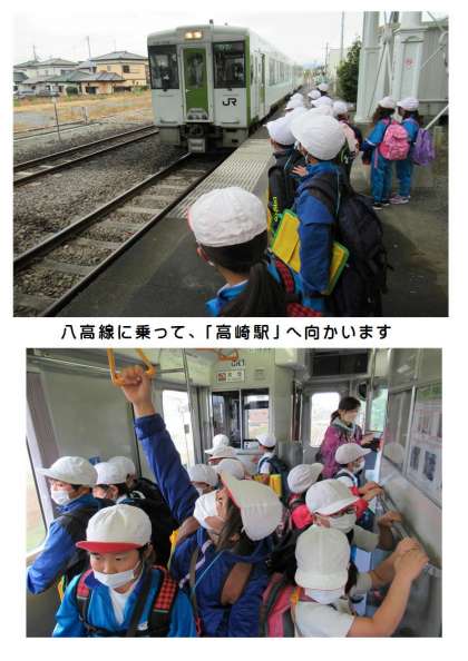 11月15日(火) 2年生校外学習「高崎駅に行こう」(1) 公開日 2022/11/15 更新日 2022/11/15 できごと 2年生生活科の校外学習「高崎駅に行こう」の様子をお伝えします。まずは、群馬藤岡駅から八高線に乗って高崎駅に向かいました。自分で切符を買って、改札を通って、無事乗車しました。
