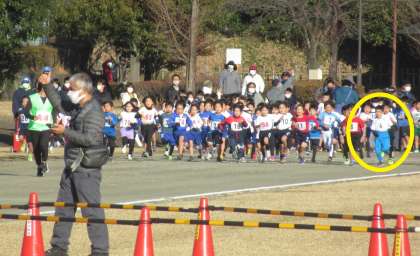 1月10日(火) 藤岡市ジュニアマラソン大会(小学1年生) 公開日 2023/01/10 更新日 2023/01/10 できごと 1月9日(月・祝)午前9時より、藤岡総合運動公園陸上競技場において、「第6回藤岡市ジュニアマラソン大会」が開催されました。本校から1〜6年生まで総勢25名の子供たちが参加しました。参加した子供たちの活躍の様子を学年ごとに紹介します。 1年生は、3名の児童(ゼッケン4番、5番、51番)が参加しました。1.1kmのコースを走りました。