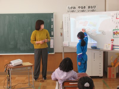 1月17日(火) 1年生の算数 公開日 2023/01/17 更新日 2023/01/17 できごと 1年生の算数の授業では、大きな数の表し方を学習していました。「10個のまとまりがいくつで、1個のまとまりがいくつなので、いくつになります。」と上手に説明することができていました。発表の仕方も成長してきました。もうすぐ2年生です。