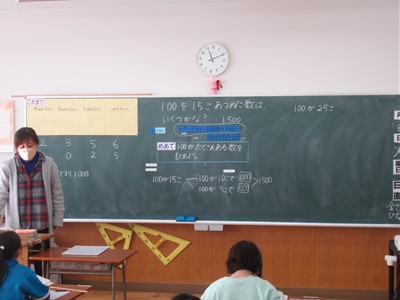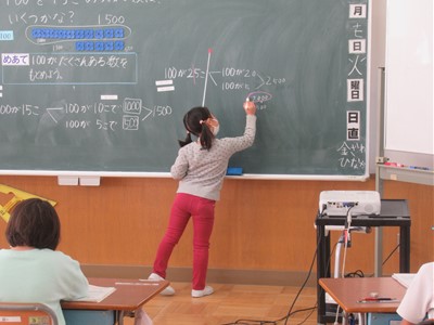 1月17日(火) 2年生の算数 公開日 2023/01/17 更新日 2023/01/17 できごと 2年生の算数では、「100がたくさんある数を求めよう」というめあてで学習をしていました。 十の数と一の位の数を手がかりにして大きな数を求める方法を学んでいました。 2年生も上手にわかりやすい説明ができていました。