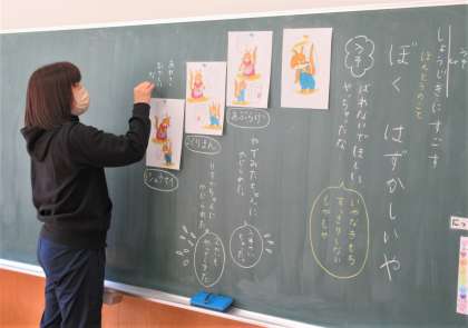1月20日(金) 1年生の道徳 公開日 2023/01/21 更新日 2023/01/21 できごと 1年生の道徳では、読み物資料『ぼく はずかしいや』を読んで、「うそをつくと、どんな気持ちになるのか」を登場人物の気持ちになって考えていました。黒板には、子供たちの意見がたくさん書き込まれていました。