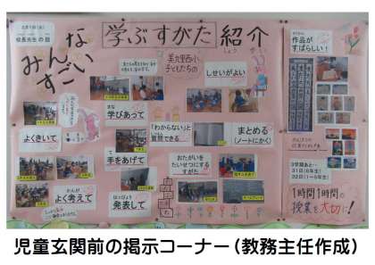 2月8日(水) 校内掲示物の紹介(藤岡市教育委員会年度末訪問) 公開日 2023/02/08 更新日 2023/02/08 できごと 児童玄関や保健室前には、その時々で全校児童に伝えたいことが掲示されています。今日の年度末訪問でも、教育委員会の皆様から「子供たちの心が明るくなるような手作りのあたたかい掲示物ですね」とお褒めの言葉をいただきました。