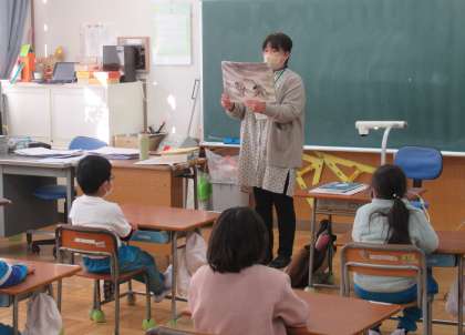 2月9日(木) 読み聞かせ(1〜3年生) 公開日 2023/02/10 更新日 2023/02/10 できごと 毎月第2木曜日の業前活動は、「さくらの会」の皆様による「読み聞かせ」です。子供たちは、毎回この読み聞かせを楽しみにしています。まさにタイムリーな「ゆきおんな」の紙芝居もありました。 (写真上から順に)1・2・3年生の様子です。