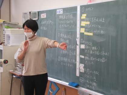 3月2日(木) 4年生の社会 公開日 2023/03/03 更新日 2023/03/03 できごと 4年生の社会では、めあて「群馬県は外国とどのようなつながりをもっているのでしょうか」について学習していました。教科書等の資料から調べてわかったことを発表し合っていました。黒板には、子供たちの意見がたくさん書かれ、ネームプレートがいっぱい貼られました。