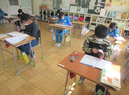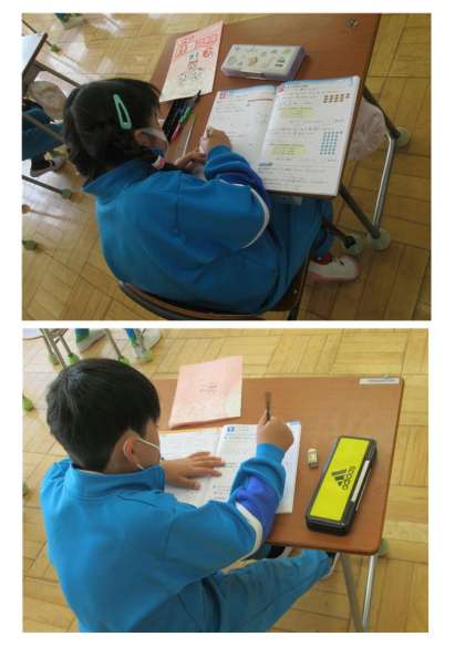 3月3日(金) 3年生の算数 公開日 2023/03/03 更新日 2023/03/03 できごと 3年生の算数では、先生から単元テストが返され見直しをした後、算数ドリルの問題に取り組んでいました。個々に集中して問題に取り組んでいました。「今の学年の学習は、今の学年のうちに身に付ける!」、子供たちは頑張っています。