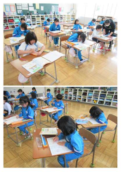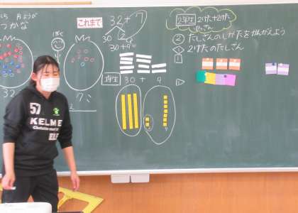 4月17日(月) 2年生の算数 公開日 2023/04/17 更新日 2023/04/17 できごと 2年生の算数では、「たし算のしかたを考えよう」の学習に取り組んでいました。教科書の問題文をしっかり音読して、課題に取り組みました。音読は、どの教科でも大切にしたい学習活動です。