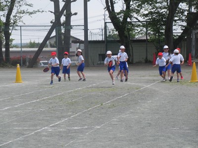 5月1日(月) 1,2年生の体育 公開日 2023/05/01 更新日 2023/05/01 できごと 3校時、1,2年生が校庭で体育の学習をしていました。いろいろな走り方で走る練習をしていました。大またで走ったり、ももを高く上げて走ったり、もも上げで走った後に大またで走ったりといろんなパターンで練習していました。最後にはリレーをしました。たくさん走っていましたがみんな笑顔で楽しそうに活動していました。子どもたちのパワーはすごいです。