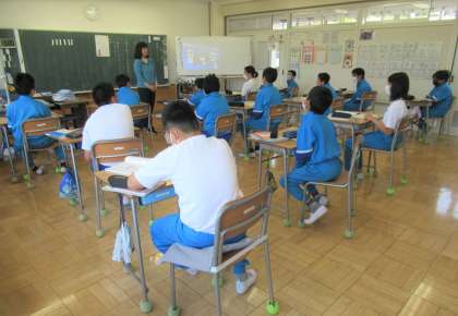 6年生の国語では、「聞いて、考えを深めよう」の学習をしていました。子どもたちにとって身近な3つの話題(「人の名前は〜さんで呼ぶ」「毎日の朝マラソンは必要だ」「給食のおかわりはいつでもしたい人がすればよい」)について、自分の考えや友だちの考えを理由をつけて聞き合いました。最後のふり返りでは、「みんなの意見が聞けてよかった」と、自分とは異なる考えや理由にふれ、自分の考えが広がったり深まったりしたようです。