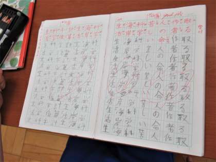 あすなろ学級の国語では、漢字の読み書き、音読、視写に取り組んでいました。国語のノートには、これまでの漢字練習の頑張りが見られます。頑張った成果が発揮され、漢字の読み問題で全問正解となりました。