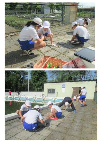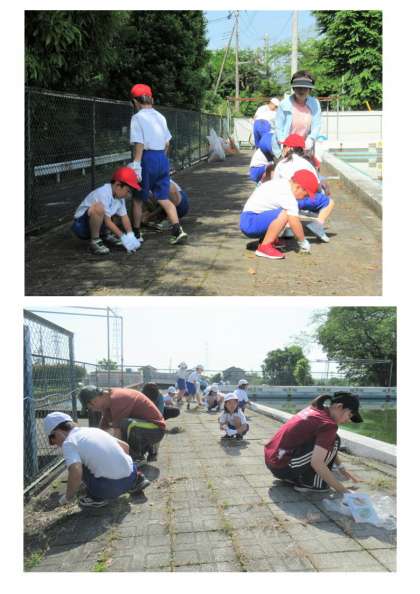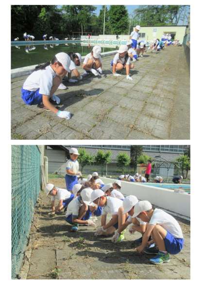 5月17日(水) プールサイドの清掃(2) 公開日 2023/05/17 更新日 2023/05/17 できごと 6月2日のプール開きに向けて、みんなで協力してプールサイドの草むしりをしました。みんな黙々と取り組んでいます。