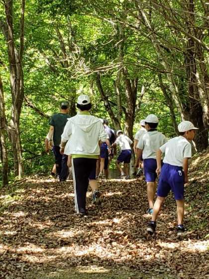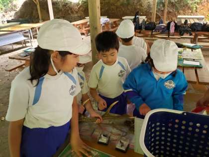 5月18日(木) 4年「鬼石自然教室」〜森の学習〜 公開日 2023/05/18 更新日 2023/05/18 できごと 子どもたちは、並べられた生物の標本に釘付けです。これから、森の中に入ります。生物や動物の痕跡が、見つかりますでしょうか。 スタート地点で、早速ヘビの脱け殻を発見しました。子どもたちの目は最強です。