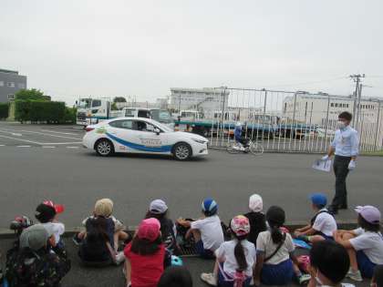 3年生たちは「かぶら自動車教習所」に到着すると、入校式を行い、講習会が始まりました。