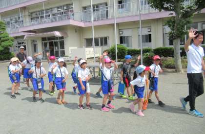 6月1日(木) 3年生の社会科 公開日 2023/06/01 更新日 2023/06/01 できごと 3年生は社会科の時間に、「地域たんけん」に出かけました。今週月曜日(5月29日)に保美方面の探検に出かけて、今日は2回目の地域たんけんです。今日は、神田方面に出かけました。神田に住む子どもたちが班長となり、出発しました。この「地域たんけん」を通して、美九里地区のよさにたくさん気付いてほしいと思います。 (写真中)ALT(外国語指導助手)の先生が見送ってくれました。「チャオ!」