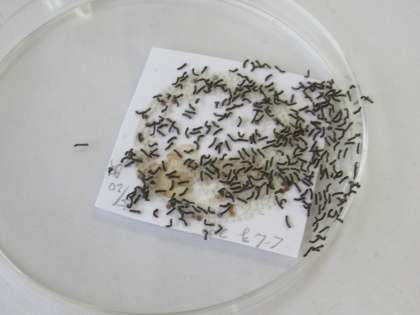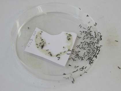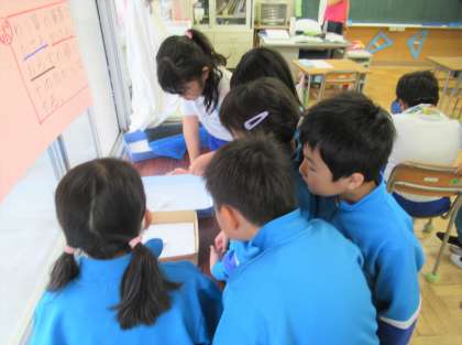 4年生が朝、登校してくると、教室の卵からお蚕が生まれていました。「お蚕が生まれた!」と子どもたちは大喜びで、小さな小さなお蚕の赤ちゃんをのぞきこんでいました。