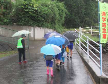 6月2日(金) 安全パトロールの方に見守られて下校 公開日 2023/06/02 更新日 2023/06/02 できごと 今日は、台風2号の影響を受けて、大雨の一日となりました。子どもたちの下校時にはかなりの本降りとなりましたが、こんな大雨の日にも、地域の安全パトロールの方が子どもたちの見守りに来てくださいました。本当に頭が下がります。子どもたちのために、ありがとうございます。