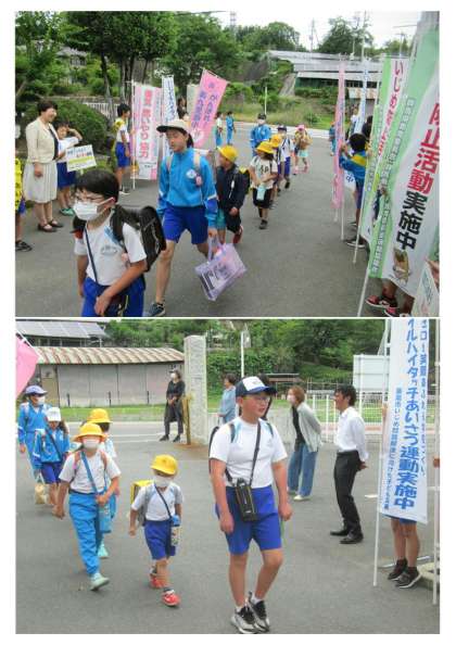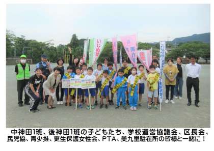 6月6日(火) 地域でふれあうあいさつ運動2日目(2) 公開日 2023/06/06 更新日 2023/06/06 できごと 今日お世話になった皆様と担当の子どもたちと一緒に、記念写真を撮りました。こうしたふれあいを通して、子どもたちと地域の皆様が顔見知りになっていきます。たいへんお世話になりました。 明日は、矢場1班・2班の子どもたちが担当です。よろしくお願いします。