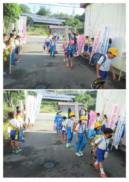6月7日(水) 地域でふれあうあいさつ運動3日目(1) 公開日 2023/06/07 更新日 2023/06/07 できごと 「地域でふれあうあいさつ運動」(学校運営協議会主催)3日目です。今日も、区長会、民児協、青少推、更生保護女性会、PTA、美九里駐在所、学校運営協議会の皆様にお世話になりました。 3日目の今日は、矢場1班・2班の子どもたちが、地域の皆様と一緒に、あいさつ運動を行いました。今日は、子どもたちがお世話になった美九里西保育園の先生が来てくださり、子どもたちは大喜びでした。