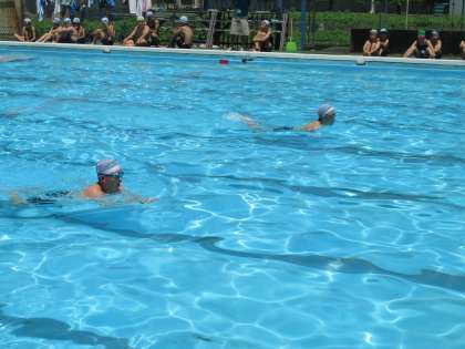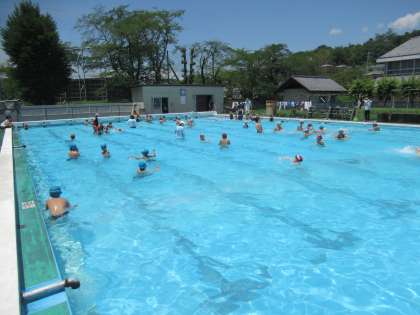そのあとに、いよいよ待ちに待ったプールに向かいました。今年度は久しぶりに、5,6年の代表児童による模範演技も披露されました。