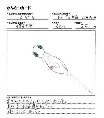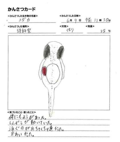 6月9日(金)5年理科 メダカのたんじょう(その3) 公開日 2023/06/09 更新日 2023/06/09 できごと ふ化したばかりの子メダカは、しばらくの間、ふくらんだはらの中にある養分を使って育ちます。