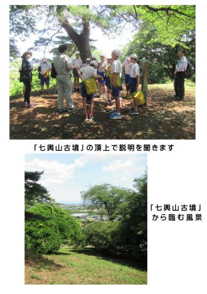 6月13日(火) 6年生社会科見学「七輿山古墳」(1) 公開日 2023/06/13 更新日 2023/06/13 できごと 平井地区古墳のあと、「七輿山古墳」を見学しました。登ったり、全周を歩いたりして、その大きさを実感しました。