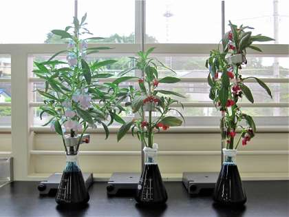 6月14日(水)6年理科 植物の成長と水の関わり(その1) 公開日 2023/06/14 更新日 2023/06/14 できごと 植物の体のつくりと水の通り道の関係を調べました。 ホウセンカの根を青色の植物染色液で染めた水につけてしばらく置くと、体全体が青く染まりました。