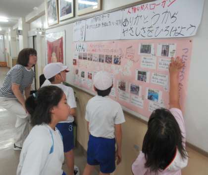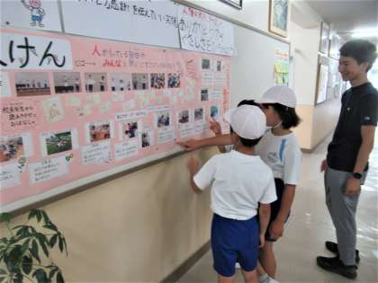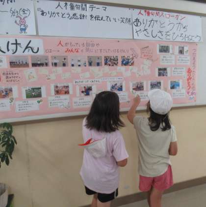 6月15日(木) 児童玄関掲示物「人権集会」(2) 公開日 2023/06/15 更新日 2023/06/15 できごと 美九里西小学校児童会公認キャラクターの「西うさぴょん」やかわいいイラストがあちらこちらに描かれていて、見ていて心がほっこりする掲示物です。子どもたちや先生たちもさっそく足を止めて見入っていました。みんなに大人気の手づくり掲示コーナーです。来校時には、ぜひご覧ください。