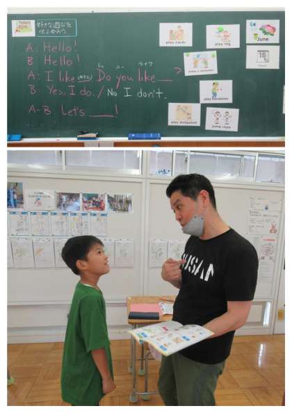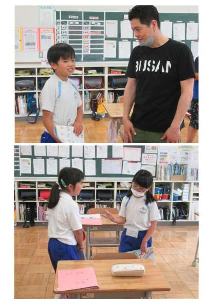 6月15日(木) 4年生の外国語活動 公開日 2023/06/15 更新日 2023/06/15 できごと 4年生の外国語活動の今日のめあては、「好きな遊びを伝え合おう」です。子どもたちは、友だち同士、担任やALT(外国語指導助手)の先生と楽しそうに英語でやりとりしていました。