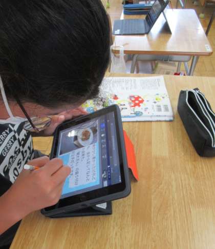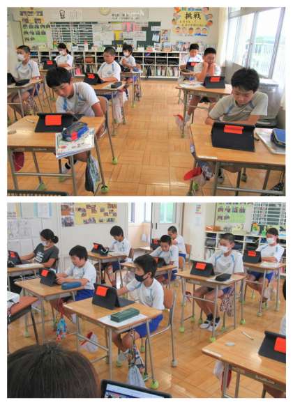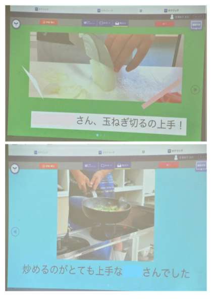 6月15日(木) 6年生の家庭科 公開日 2023/06/15 更新日 2023/06/15 できごと 6年生の家庭科では、先週行った調理実習「(野菜の)いろどり炒め」のふり返りをしていました。調理実習班で撮影した写真を使って、タブレットにコメントを入れながらまとめ、発表しました。お互いの頑張りや感想を共有しました。
