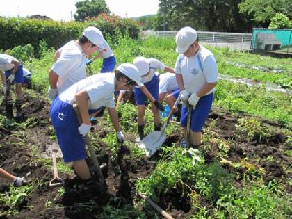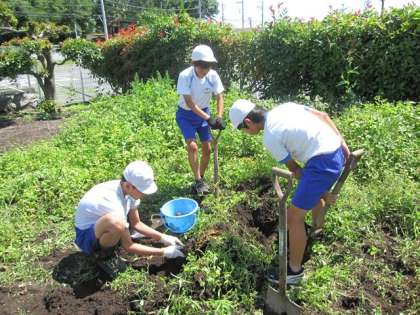 土が湿っていてけっこう重労働でしたが、協力して楽しそうに芋掘りをしていました。
