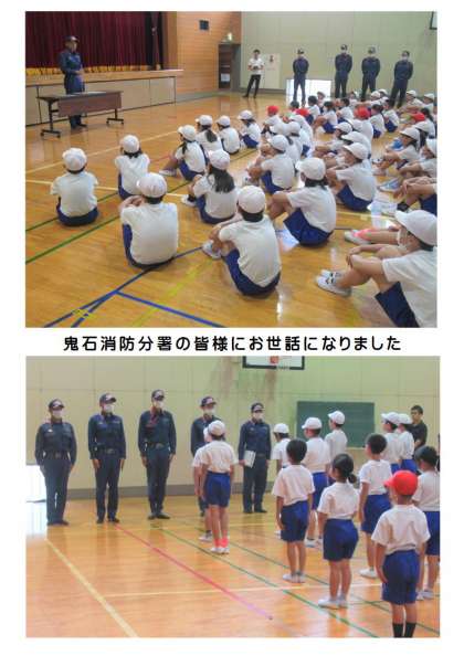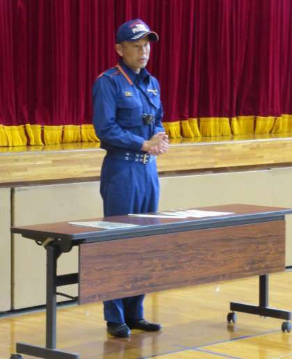 鬼石消防分署の方からは、もし登下校中(通学路)に地震が起きたら、家にいる時に地震が起きたらどのように行動したらよいか、またそのための日頃の準備について、子どもたちに問いかけ考えさせながら具体的に教えていただきました。