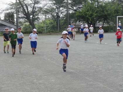 涼しい朝の業前の時間に、今日も全校で朝マラソンをしました。