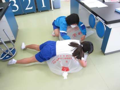 空気をポリ袋に閉じ込めて押してみました。