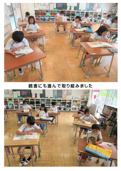 今日は、午前中、先生たちが交代で東中の研究授業参観(東中校区合同研修)へ出かけるため、各学年で自習の時間がありました。2年生は、支援員の先生と一緒に、国語の課題に取り組んでいました。みんな静かに集中して取り組んでいます。課題が終わると、タブレットで漢字問題に取り組んでいました。読書も進んで行っていました。2年生、すごいです!